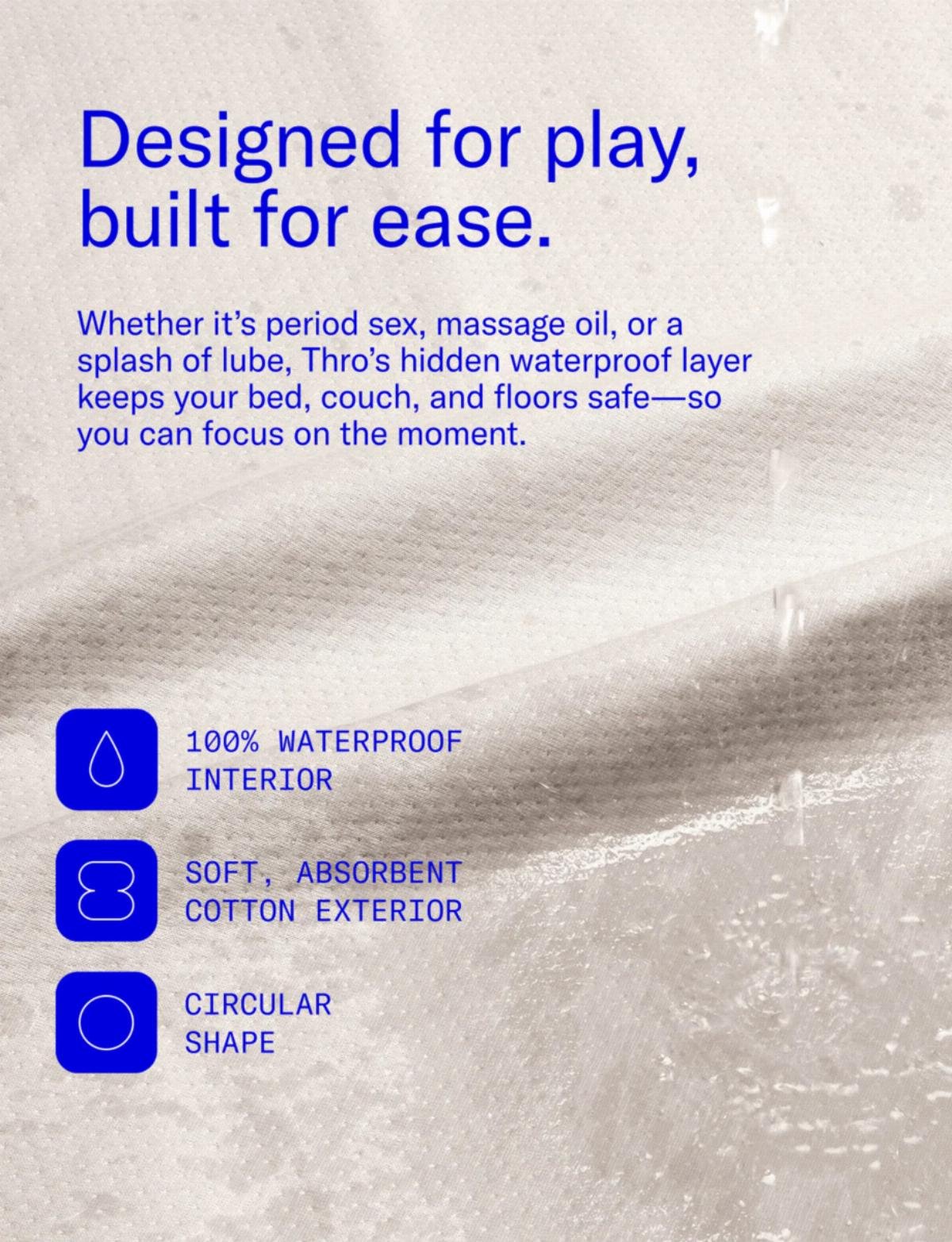 The Thro play blanket from DAME is made of ultra-soft cotton with a hidden waterproof layer that keeps things clean. The handy pouch makes it easy to carry. Breathable, compact, and versatile, perfect for everything from period sex to breakfast in bed or a picnic under the stars.