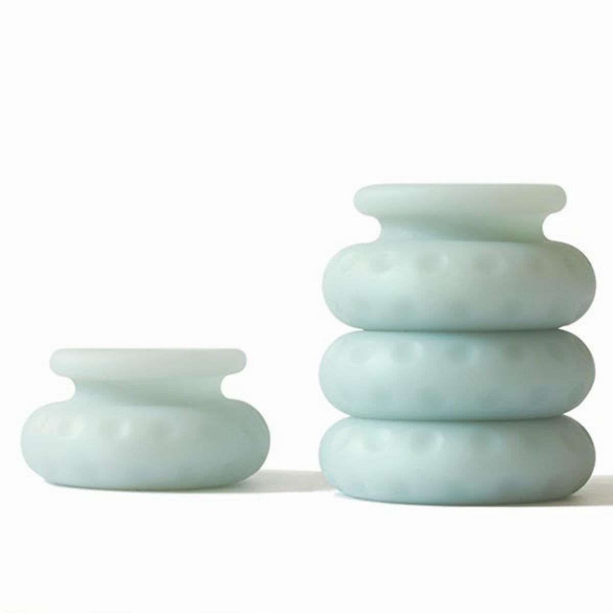 These very soft and stretchy rings can be used as a buffer between the bodies of both partners or between the body and the base of a toy. That allows you to easily determine the depth of penetration. The rings can be placed around the penis or a dildo/vibrator. The 4 rings stacked together have a measure 7.5 cm and they are stretchable to a width of 20 cm. The rings can also be used with condoms. Clean the rings after use with water and toy cleaner or mild soap.